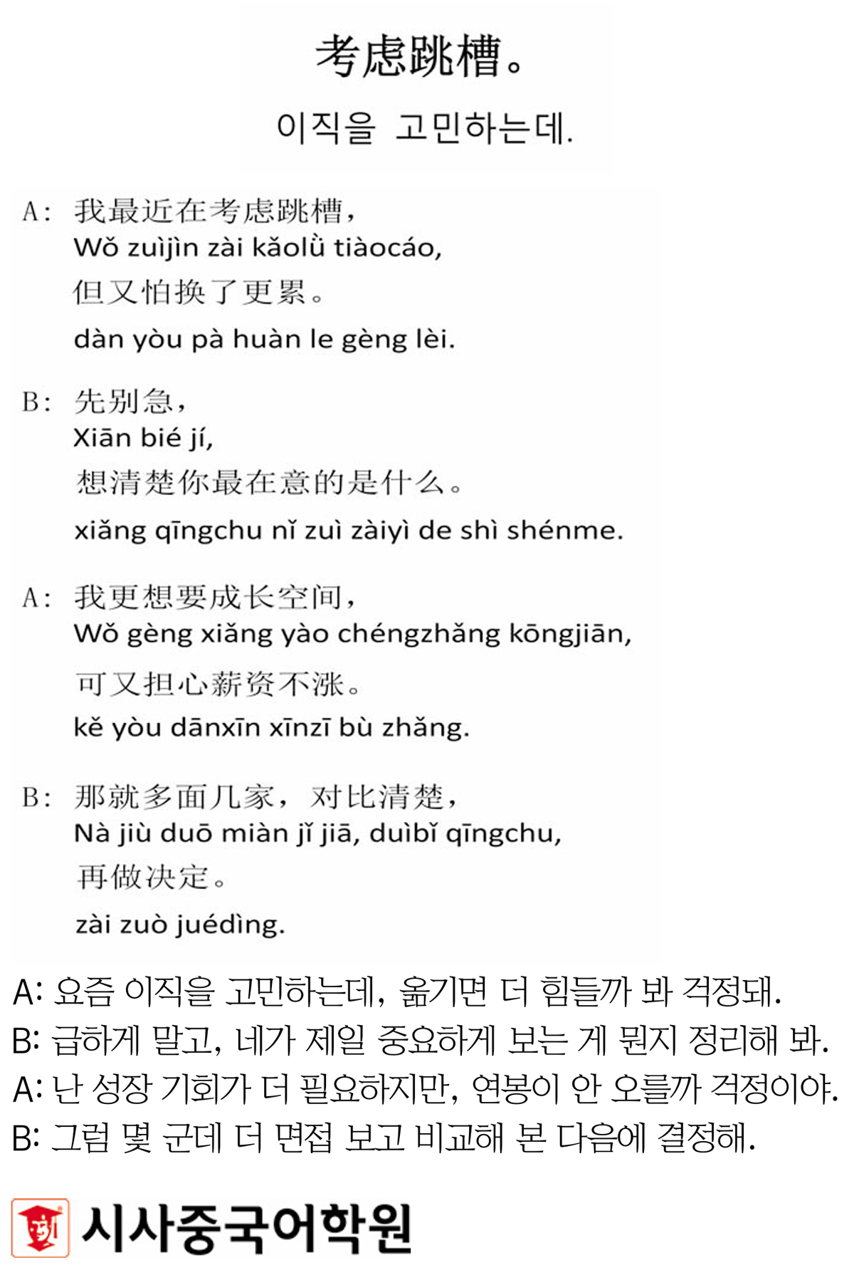 [시사중국어학원의 리얼 중국어 회화] 이직을 고민하는데.