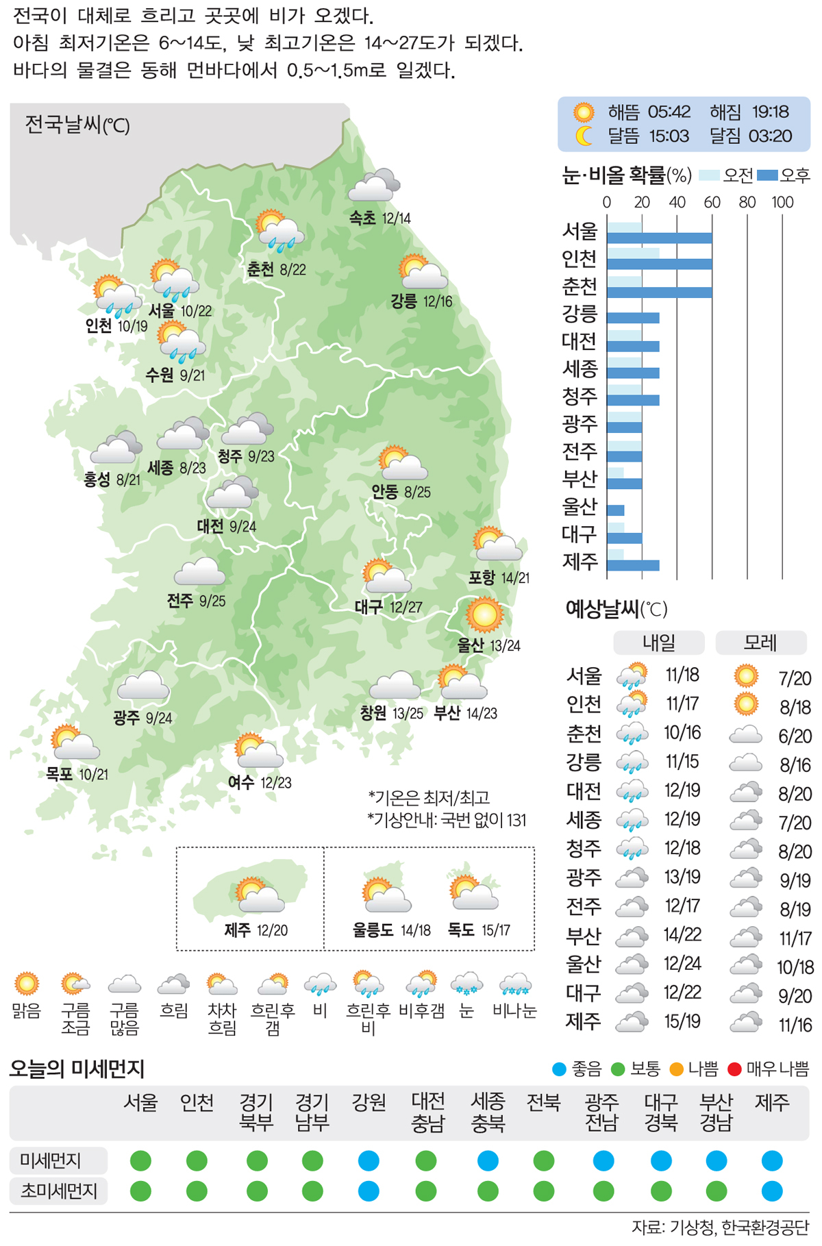 [27일의 날씨] 밤부터 곳곳 비