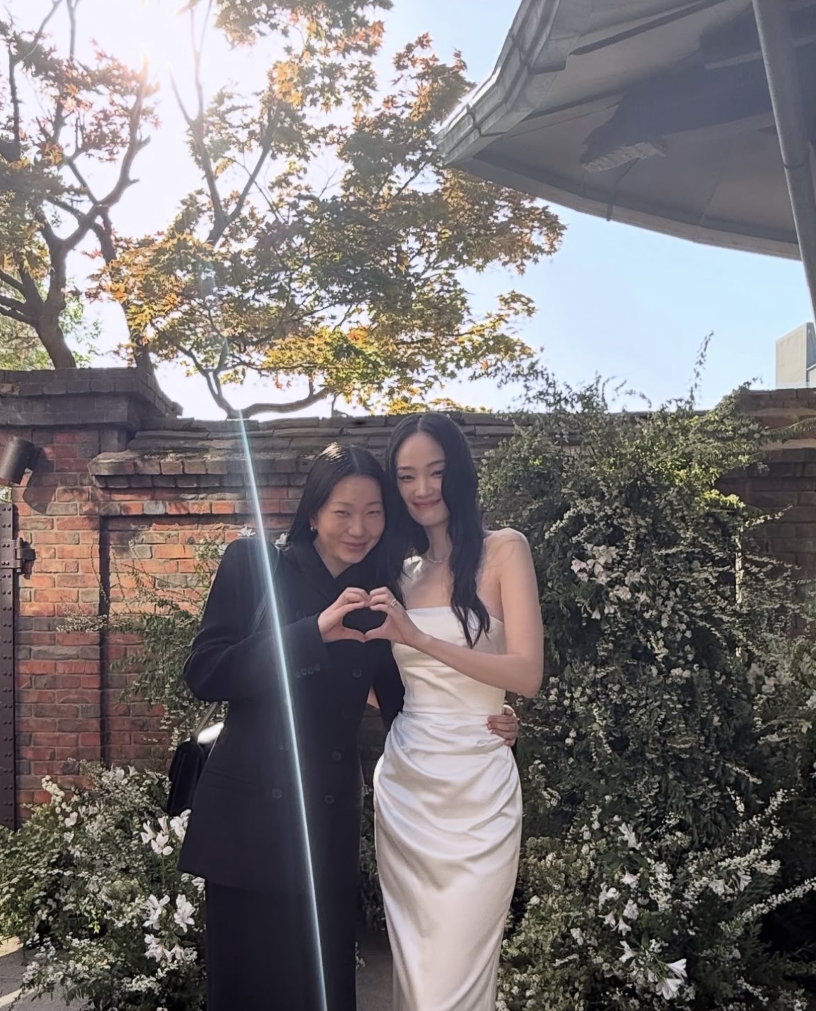사진 속 신현지는 웨딩드레스를 입고 있어 눈길을 끌었다. 장윤주는 그와 함께 손으로 하트를 만들어 포즈를 취하고, 다른 손으로는 그의 허리를 감싸 친분을 드러냈다.