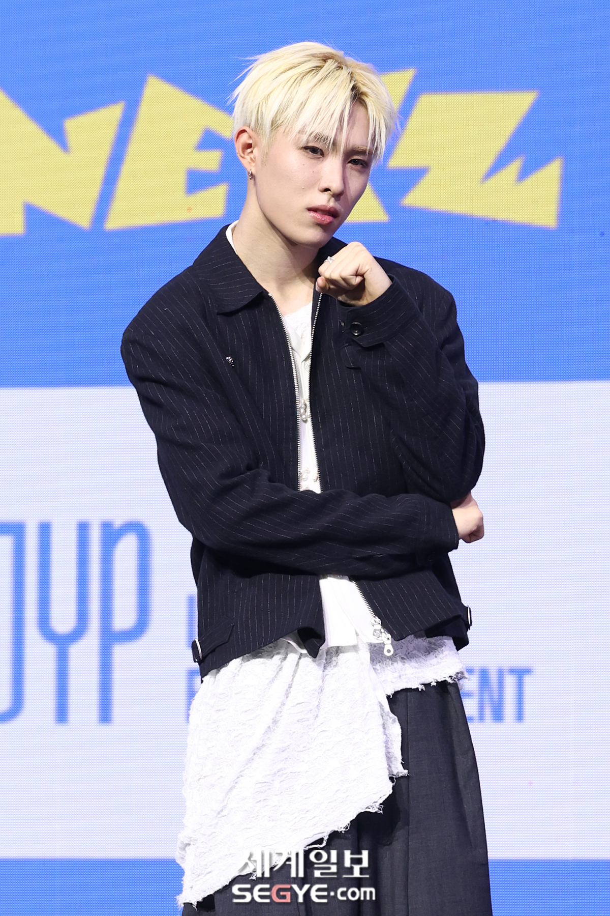 그룹 넥스지 휴이가 27일 서울 용산구 한남동 블루스퀘어에서 열린 싱글 2집 ‘Mmchk’(음츠크)의 쇼케이스에 참석해 포즈를 취하고 있다.