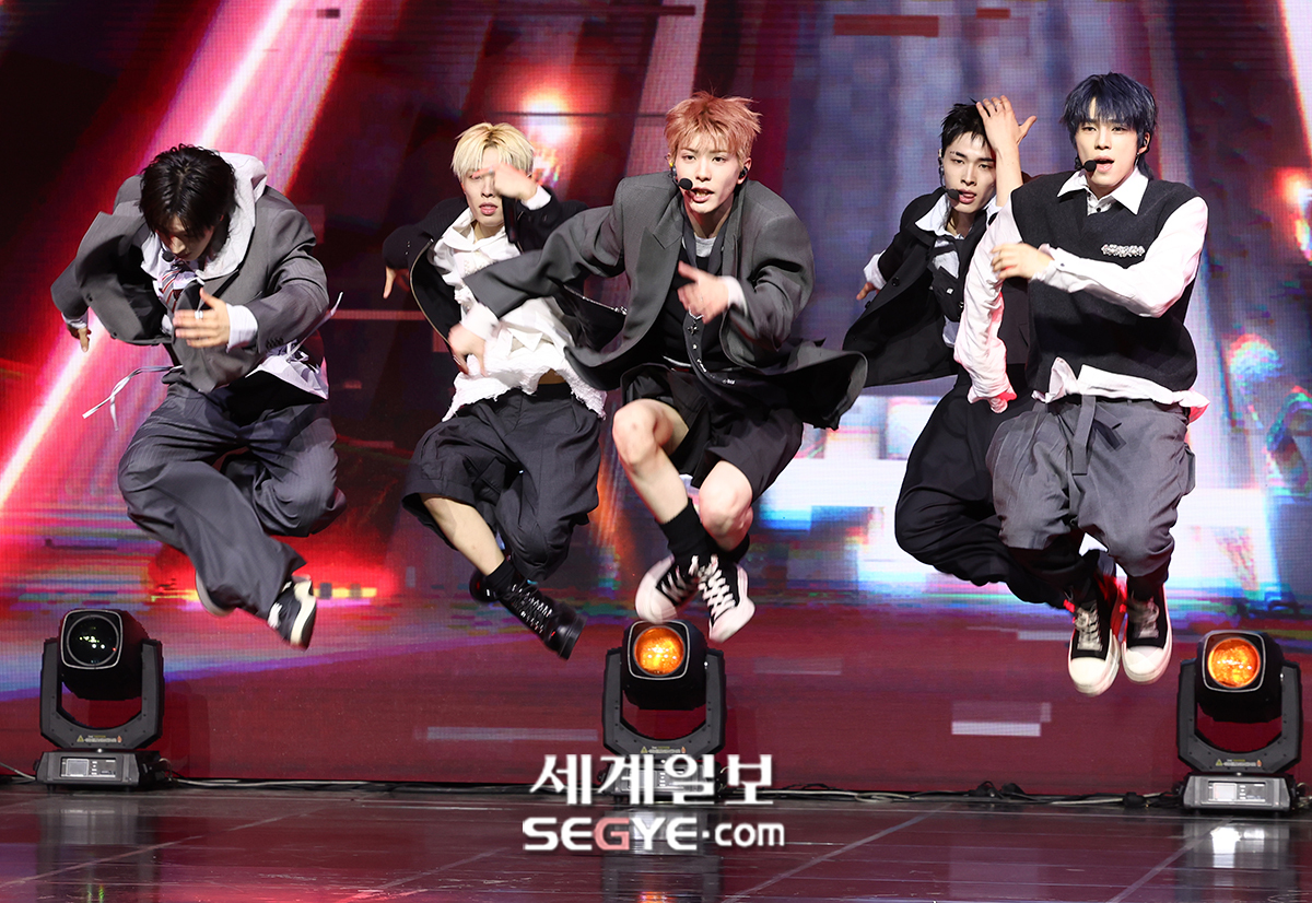 그룹 넥스지가 27일 서울 용산구 한남동 블루스퀘어에서 열린 싱글 2집 ‘Mmchk’(음츠크)의 쇼케이스에 참석해 열띤 공연을 펼치고 있다.