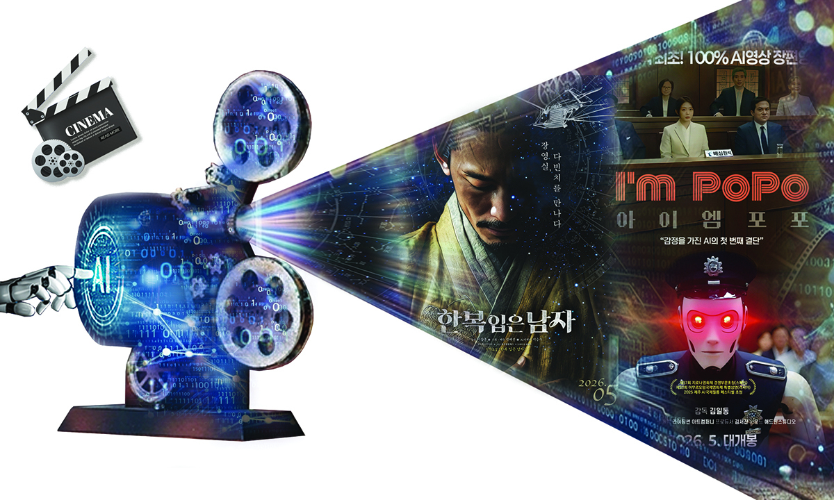 “100% 생성형 인공지능(AI)으로 만든 장편”을 표방한 영화 두 편이 다음 달 21일 나란히 개봉한다. 미술가이자 웹툰 작가인 김일동의 ‘아이엠 포포’와, 소설 ‘한복 입은 남자’를 원작자 이상훈이 동명 영화로 만든 작품이다. 두 영화 모두 실제 배우나 세트 없이 전 과정을 AI로 구현했다는 점을 전면에 내세워 홍보하고 있다.