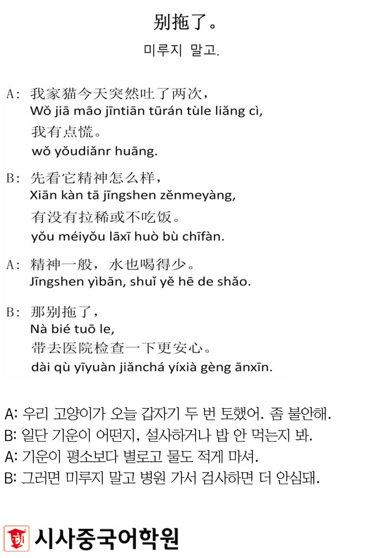 [시사중국어학원의 리얼 중국어 회화] 미루지 말고.