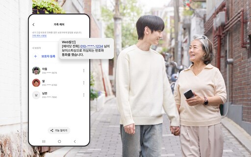 SK텔레콤이 에이닷 전화에 보이스피싱 의심 통화를 탐지하면 등록된 보호자에게 즉시 위험 상황을 알리는 ‘가족 케어’ 기능을 새롭게 선보인다고 27일 밝혔다. 이 기능은 통화 중 인공지능(AI)이 보이스피싱 의심 정황을 탐지하면 사전에 등록된 보호자에게 알림을 전송한다. 사진은 가족 케어 기능을 소개하는 모델들의 모습.