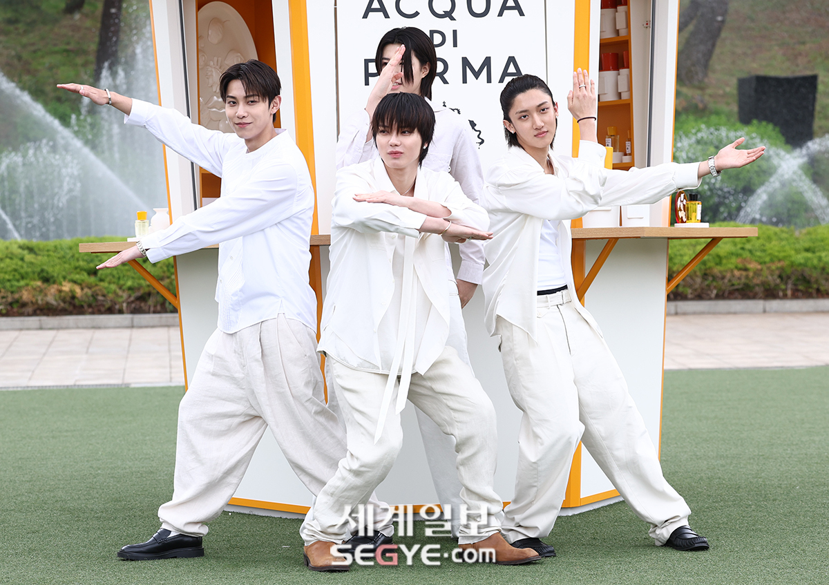 그룹 롱샷이 28일 서울 서초동 예술의 전당 음악광장에서 진행된 이탈리안 라이프 스타일 프래그런스 브랜드 팝업 오프닝 행사에 참석해 포즈를 취하고 있다.