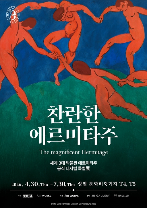 전시 기획사 아트웍스는 오는 30일부터 7월30일까지 서울 상암 문화비축기지에서 ‘찬란한 에르미타주’(포스터)를 개최한다고 28일 밝혔다. 에르미타주박물관은 18세기 중반 건립된 러시아제국의 겨울궁전에 자리한 러시아 최대 규모의 미술관으로, 300만점이 넘는 유물을 소장하고 있다. 이번 전시에서는 에르미타주박물관의 대표작 80여점을 디지털로 선보인다.