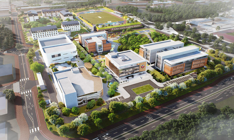 제주영어교육도시에 국내 첫 순수민간자본 국제학교이자 이공계 학교인 ‘풀턴 사이언스 아카데미 애서튼(FSAA·조감도)’이 2028년 8월 개교한다. 영어교육도시 내 다섯 번째 국제학교다.