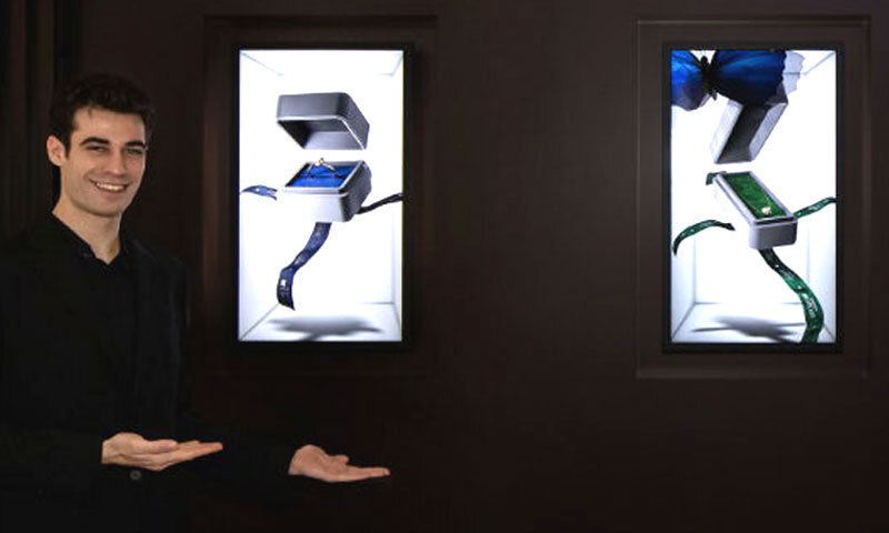 32인치 신제품은 FHD(1080×1920) 해상도와 9대16 화면비를 적용해 신발과 주얼리 등 전시 상품의 정면·측면·후면 등을 아우르는 360도 회전 영상을 실감 나게 구현할 수 있다. 기존 박스 형태의 3D 디스플레이 대비 가벼워 설치가 편리하고 스탠드와 벽걸이를 모두 지원해 일반 사이니지(시각 구조물)처럼 공간의 인테리어에 맞춰 유연하게 설치할 수 있다.