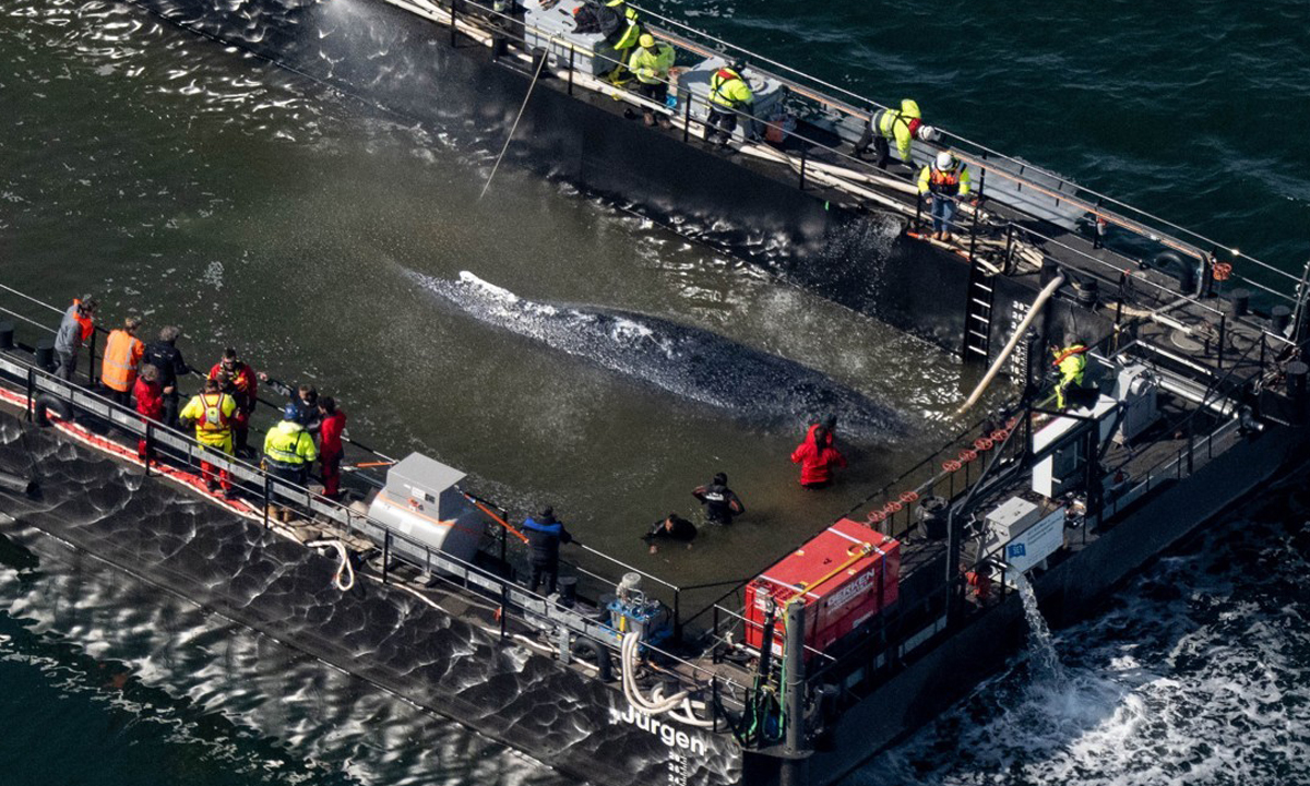 이번 이송 작전은 물이 채워진 선박 운반용 바지선에 고래를 싣고 북해까지 이동한 뒤, 고래의 상태를 확인해 방류하는 방식으로 진행된다. 고래가 스스로 빠져나가지 못하도록 바지선 입구에는 그물망이 설치됐다.