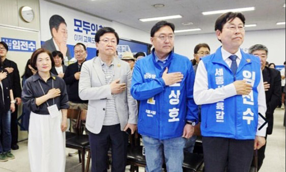 강미애·김인엽·안광식·원성수 예비후보는 이날 교육부 앞에서 기자회견을 열어 “국무위원이자 장관이 특정 후보의 선거 행사에 참석한 것은 선거에 영향을 미칠 수 있는 중대한 행위”라며 “최 장관은 이번 사안에 대해 공식 사과하고 경위와 책임을 분명히 밝혀야한다”고 요구했다. 또 선거관리위원회에 즉각 사실 확인과 조사 착수를 촉구했다.