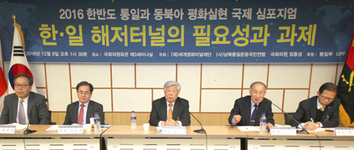 | “한국 해양·대륙세력 가교 역할 하도록 한일해저터널 건설 적극 검토를” 통일·동북아 평화 실현 심포지엄 입력 2016-12-08 17:26:23, 수정 2016-12-08 22:17:43 한국이 해양세력과 대륙세력을 연결하는 역할을 할 방안으로 한일해저터널 건설을 긍정적으로 고려할 필요성이 있다는 주장이 제기됐다.