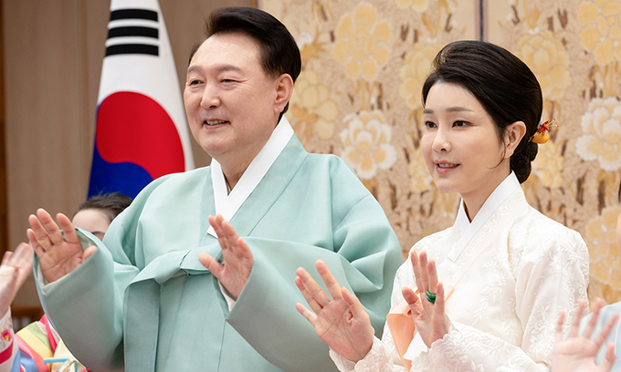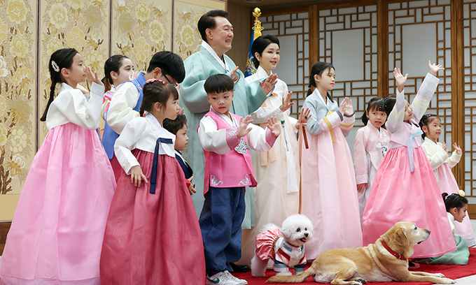이번 영상에는 윤 대통령 부부와 함께 12명의 다문화가정 어린이들이 한복을 차려입고 등장해 눈길을 끌었다. 중국, 베트남, 파키스탄 등 다양한 국가 출신 부모를 둔 3~11세 아이들이 영상에 초대됐다.