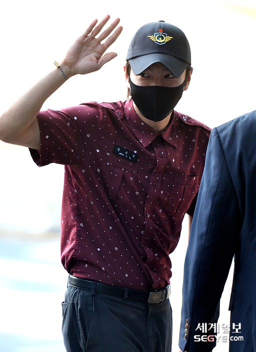 배우 장근석이 29일 오후 서울 소방재난본부에서 사회복무요원으로 군 대체 복무를 마치고 취재진에게 소집해제 인사를 하고 있다.
