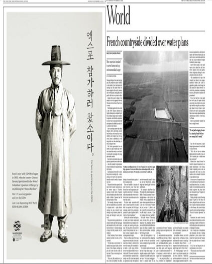 미국 뉴욕타임스(NYT) 등 주요 해외 언론에 한복을 입고 갓을 쓴 조선 외교관이 등장했다. 부산시가 2030부산세계박람회(엑스포)를 유치하기 위해 게재한 이색적인 광고다.